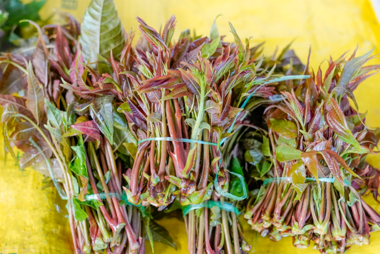 那紫红油亮的嫩芽,在箩筐里码得整整齐齐,散发着浓烈而霸道的气息。