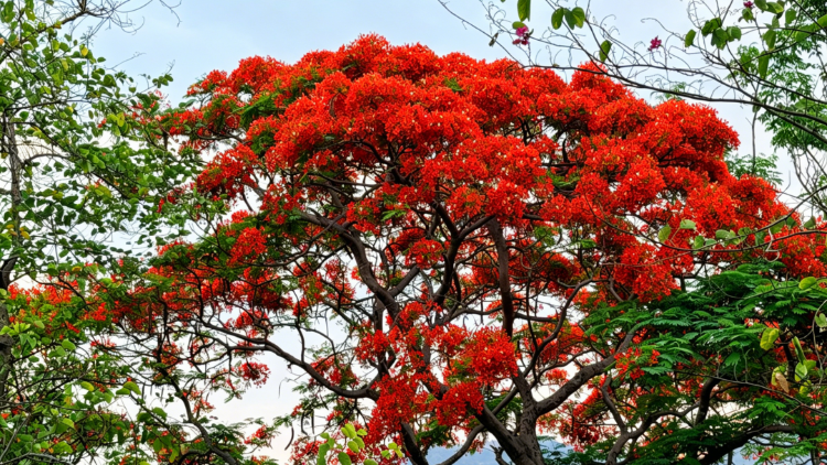 设一个闹钟,标记好日历——当第一树凤凰花完全打开时,你就该来了。