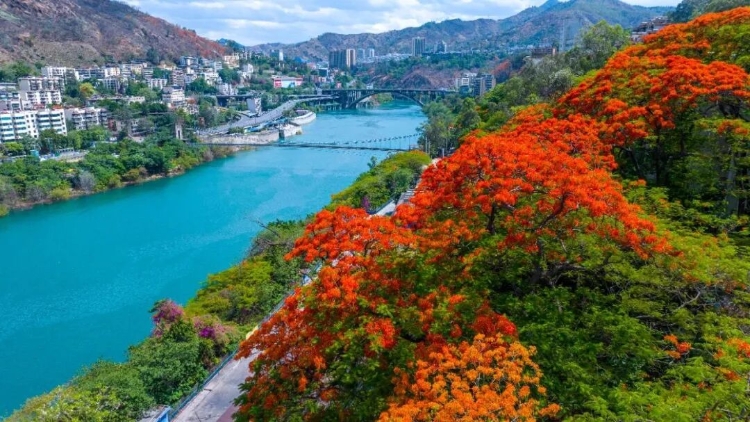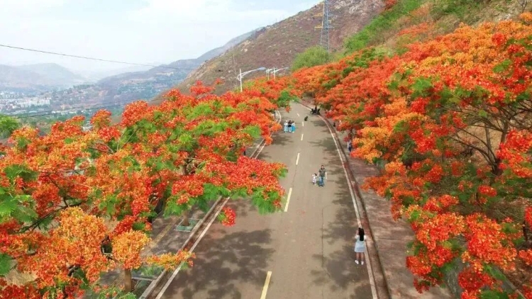 来攀枝花,走在被红云覆盖的街道上,让花瓣落在肩头,看整座城市变成一幅燃烧的油画。
