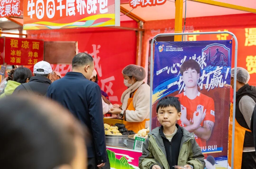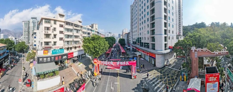 此次活动核心区域沿爱尔眼科至消防队、公园入口至假山两侧铺展,80个展位错落排布,烧烤美食展区烟火升腾、综合展区人气十足。“阳光花果城 康养攀枝花”等主题元素贯穿门头设计、道旗装饰与帐篷布置,“川超”各参赛球队的专属道旗迎风招展,将体育热情与城市底蕴巧妙交融。主舞台与街区无缝联动,趣味套圈、快乐颠球等互动游戏区前人头攒动,市民游客踊跃参与,欢声笑语不断,活动氛围浓厚。