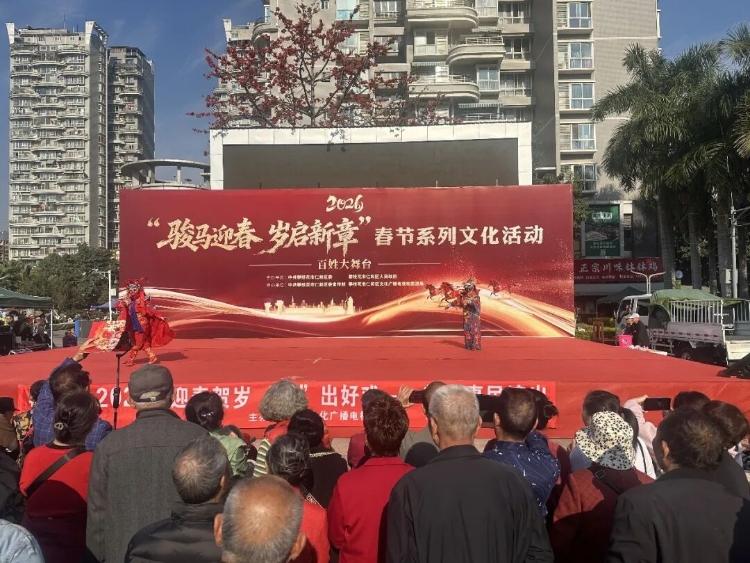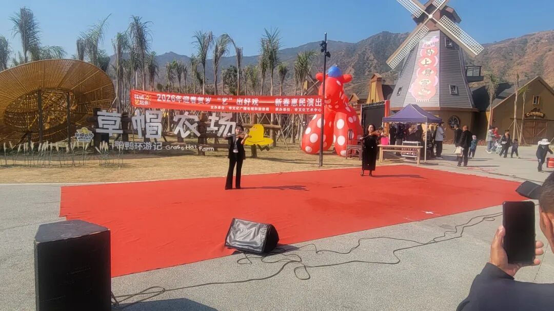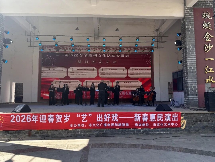 锣鼓声声辞旧岁,惠民演出贺新春。为营造欢乐、祥和的节庆氛围,满足市民群众、康养游客精神文化需求,由市文化广播电视和旅游局主办,市文化艺术中心承办,仁和区文化馆、东区文化馆协办的2026年“迎春贺岁‘艺'出好戏”——新春惠民演出于2026年2月17日(正月初一)至2026年2月21日(正月初五)分别在湖光剧场、仁和广场、仁和区迤沙拉村、立新村、东区图书馆举办。5天的春节假期,市文化艺术中心共开展10场文艺演出,现场总计观众6200余人。