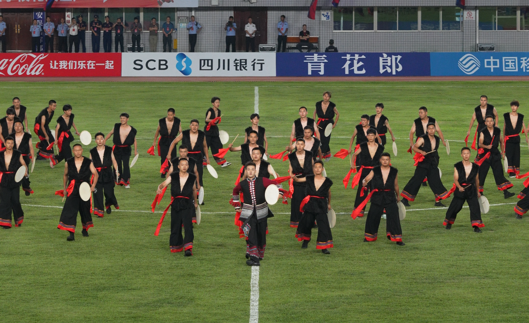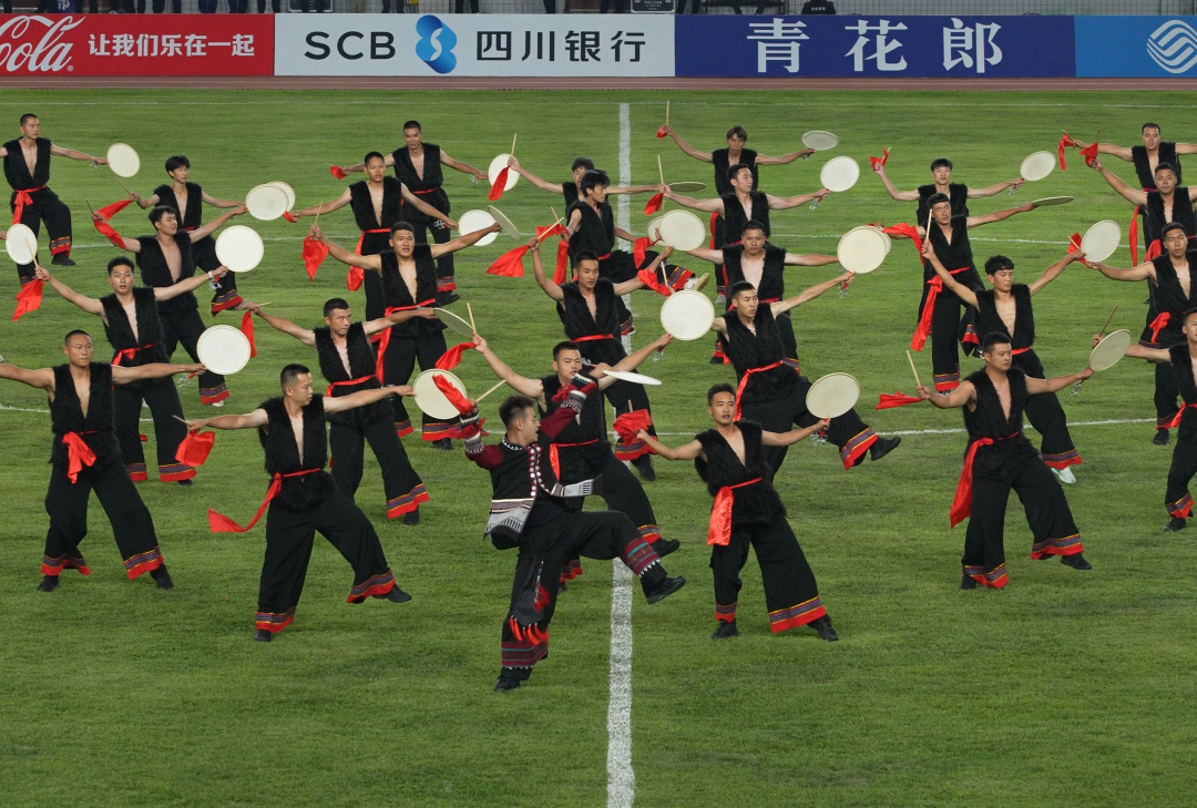 源自俚颇彝族的羊皮鼓舞,已从古老的祭祀场,大步踏入了今天的足球场。当上百名鼓手散布跑道,阵阵鼓声与现场球迷的欢呼交织,完成了一场跨越千年的对话。
