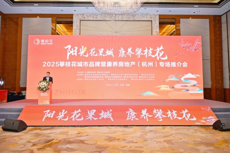 2025年12月25日,由中共攀枝花市委、攀枝花市人民政府主办,攀枝花市住房和城乡建设局、攀枝花市文化广播电视和旅游局、攀枝花市商务局、攀枝花市自然资源和规划局、攀枝花市卫生健康委员会、攀枝花市经济合作局、攀枝花市东区人民政府联合承办的“阳光花果城 康养攀枝花——2025攀枝花城市品牌暨康养房地产(杭州)专场推介会”在杭州隆重举行。来自杭州市及长三角地区的文旅康养企业、商协会、旅行社、中介机构、主流媒体以及潜在购房者等200余位嘉宾齐聚一堂,共赴这场关于健康、幸福与美好生活的温暖之约。
