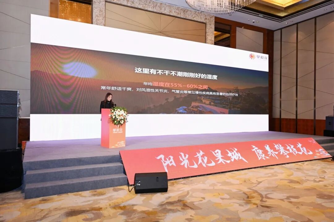推介活动以一段名为《初见·重逢·回首》的城市宣传片拉开序幕,金沙江畔的壮美山河、四季不谢的鲜花、琳琅满目的鲜果、温暖如春的气候,瞬间将现场嘉宾带入阳光明媚的攀枝花。攀枝花市人民政府副秘书长殷红在致辞中表示,攀枝花正迎来高质量发展的战略机遇期,依托“温度、湿度、海拔高度、洁净度、优产度、和谐度”六大不可复制的康养禀赋,打造集阳光度假、健康疗养、文化体验于一体的“第二生活空间”,诚挚邀请杭州朋友来做“阳光知音”“发展挚友”和“攀枝花家人”。