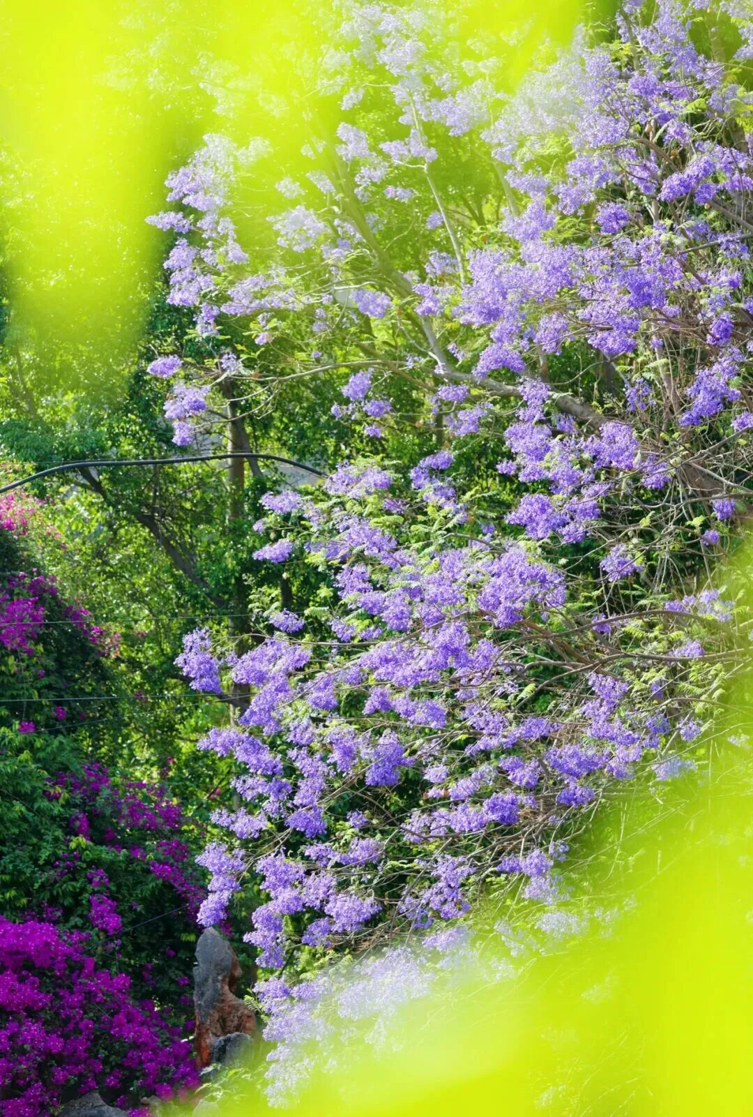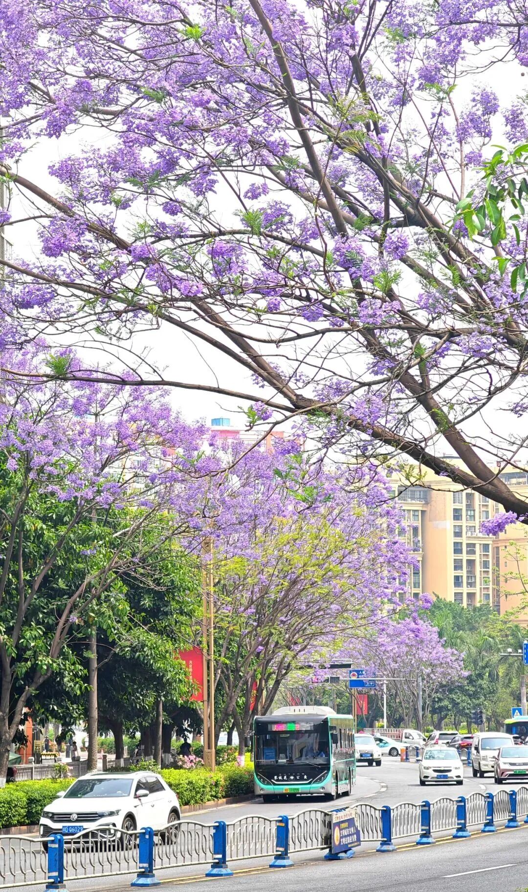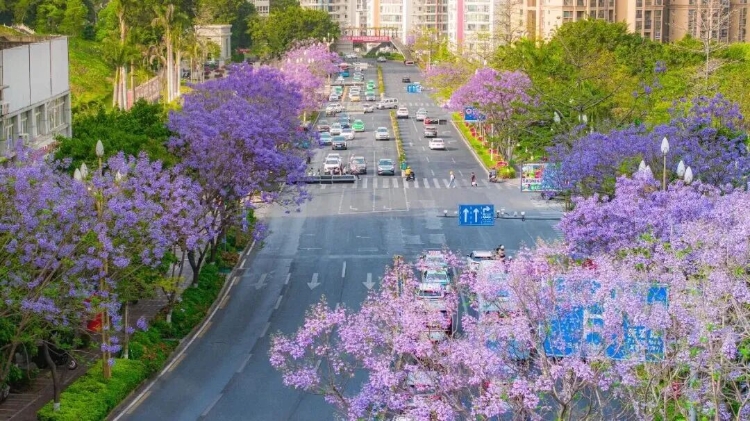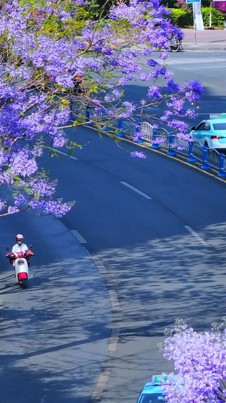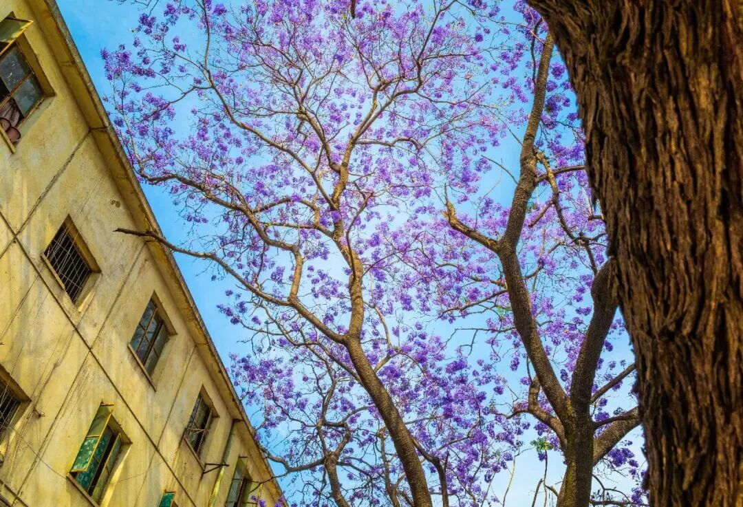于是,这座以钢铁著称的城市,忽然柔软了下来——只因那一树一树的蓝花楹,悄悄地开了。