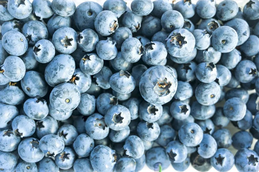 一簇簇色泽透亮的蓝莓果挂满了枝头