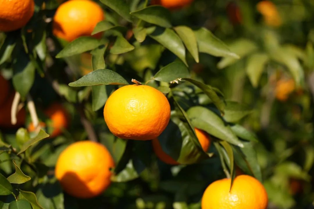 果树上缀满了圆溜溜、黄灿灿的大沃柑
