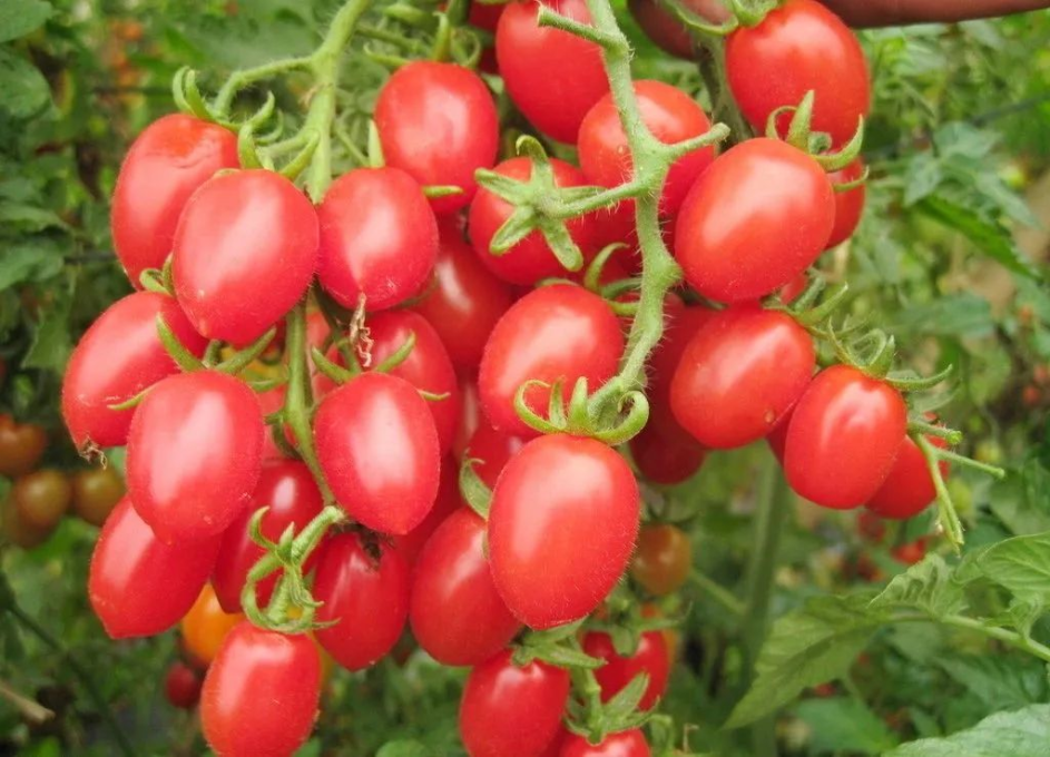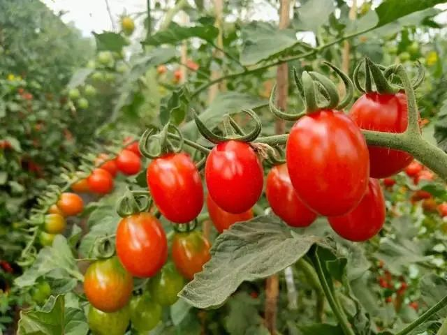 一颗颗红绿相间的番茄挂满了绿色藤蔓
