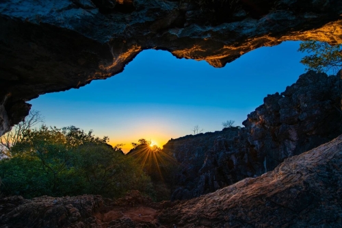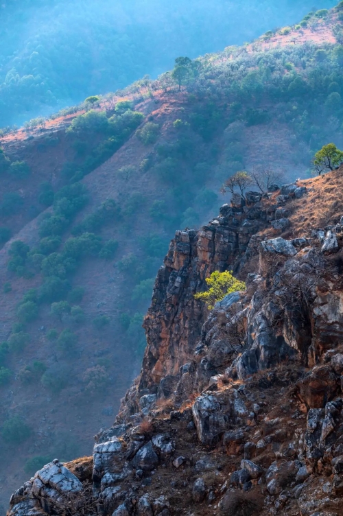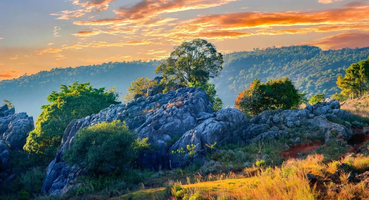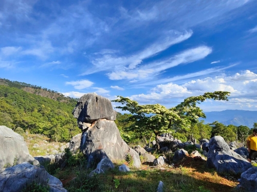 灌木丛苍翠如海、天然石林嶙峋怪异