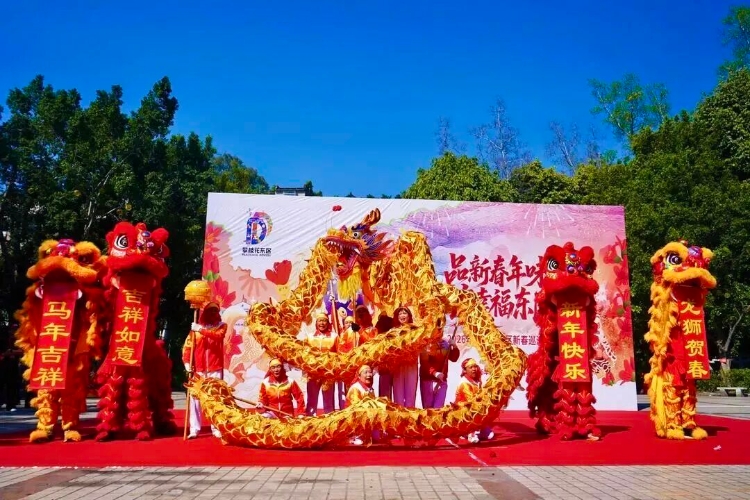 从城市商圈到街头巷尾,从景区到社区,民俗活动轮番上演。东区新春贺岁大巡游连续六天嗨翻全城,舞龙舞狮、汉服巡游、财神送福等让街头变舞台。米易县“中国年味·米易最浓”系列活动精彩纷呈,龙狮巡游、主题花车互动演绎,再现传统年俗魅力。市文化艺术中心惠民演出走进剧场、广场、乡村,10场文艺演出让百姓在家门口乐享文化大餐。