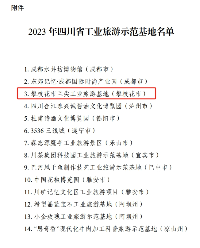 喜报!攀枝花市兰尖工业旅游基地荣获2023年省工业旅游示范基地称号