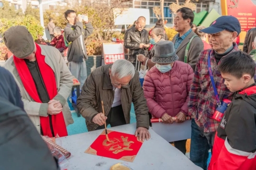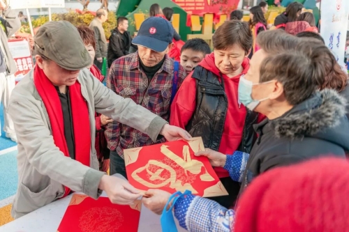 68岁的老党员蒋正和老师,一直志愿参加送“福”写春联活动,谦逊地说:“初心未改,一写红对联,就像过组织活动。”