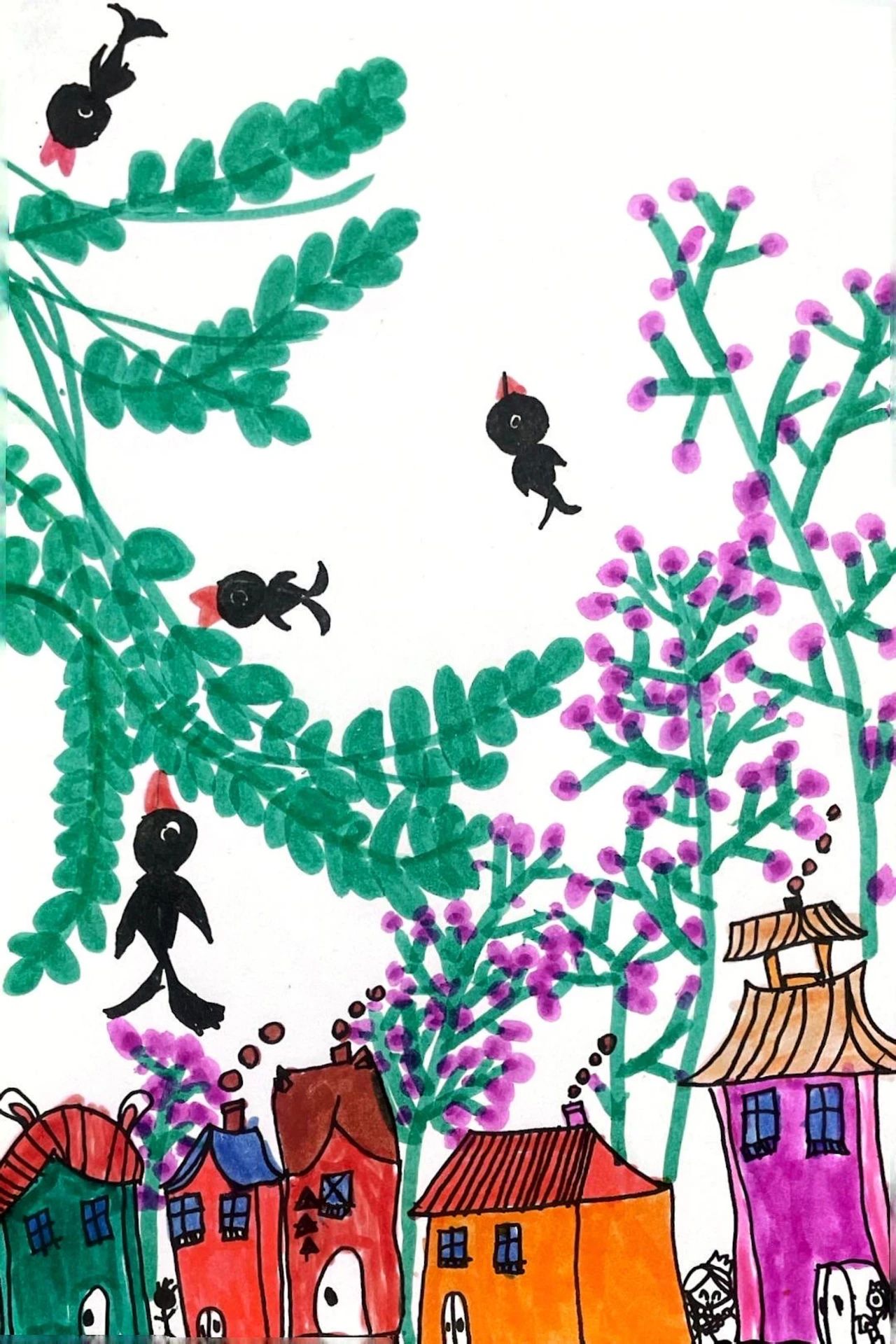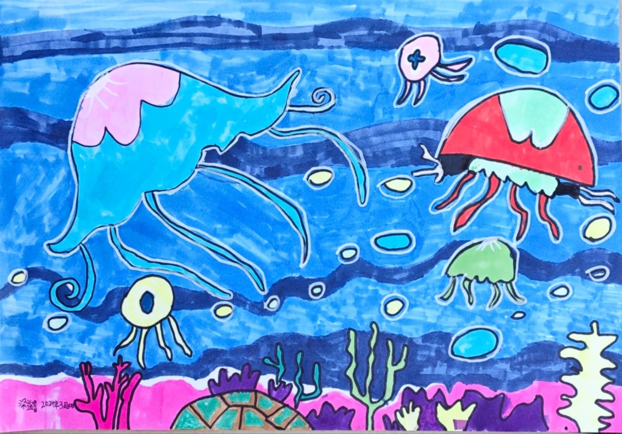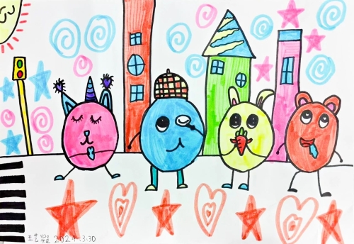 孩子们的每一幅画作都充满了童趣和创意,让我们看到了他们独特的视角、天真无邪和纯真烂漫的内心世界。这些画作不仅展现了孩子们的才华,也让我们感受到了他们的成长与欢喜。