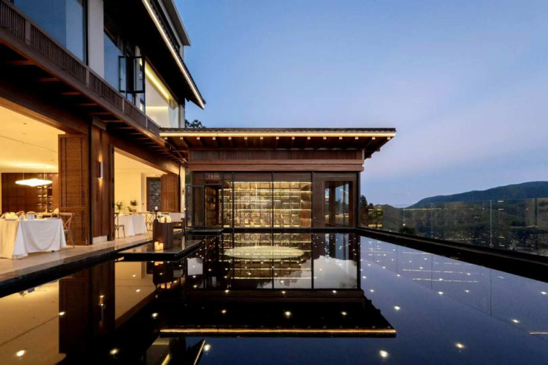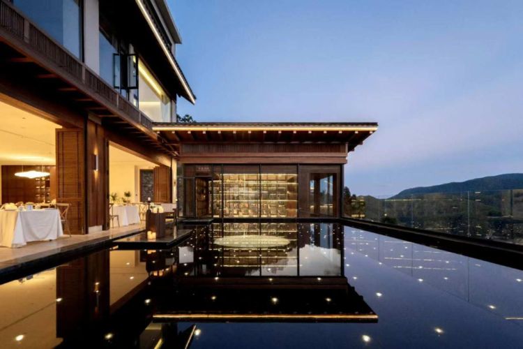 藏于山林,22℃清凉伴高负氧离子。客房推窗见山,配私汤,餐用有机菜,服务贴心,康养氛围足。