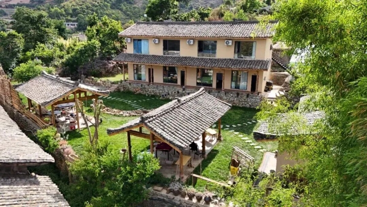邻箐河瀑布,依山傍水。可品非遗浑浆豆花、清炖河鱼,四星乡村酒店标准,康养惬意。