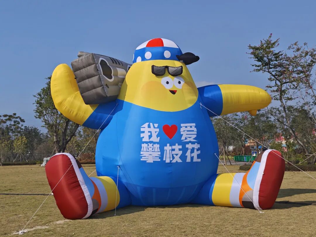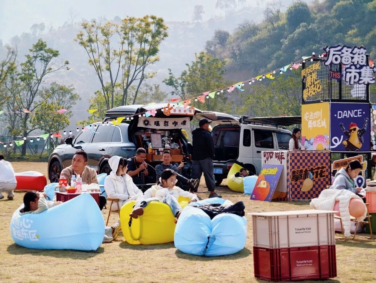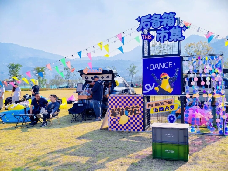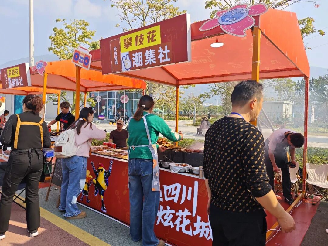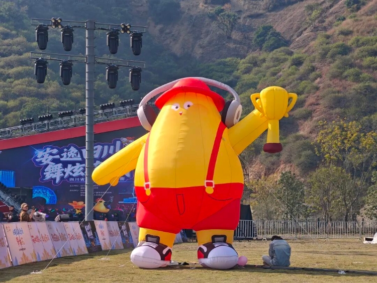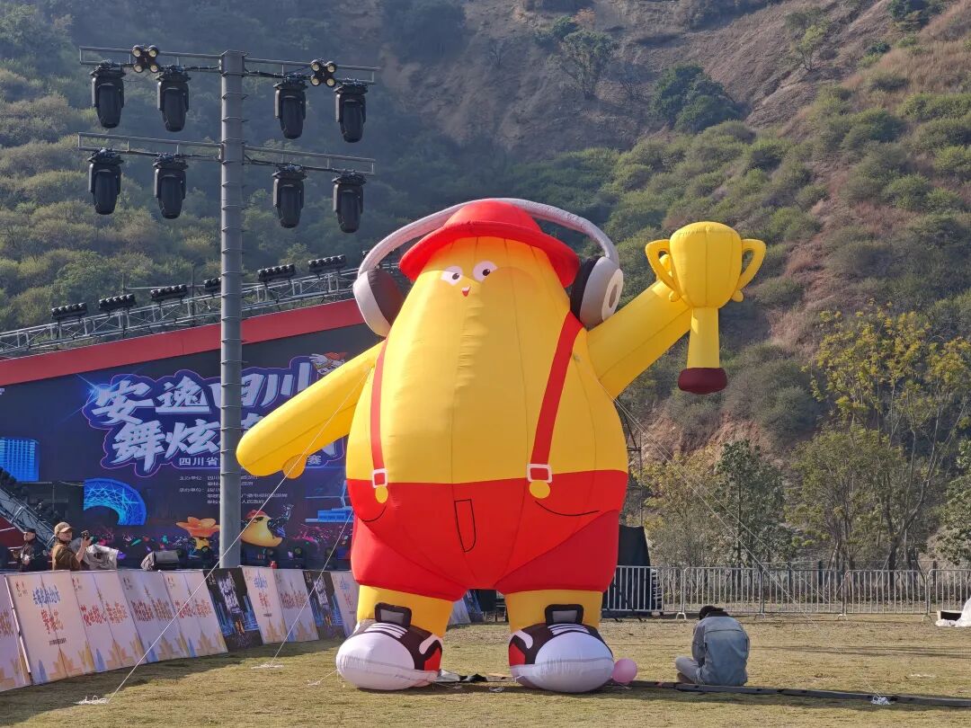 走进景区,浓郁的赛事氛围扑面而来。主舞台在蓝天白云与缤纷花海的映衬下显得格外炫酷,灯光音响设备已调试完毕。场内,融合了经典街舞动作的“攀芒芒”巨型气模装置憨态可掬,吸引了众多观众先行合影打卡。“后备箱集市”飘来阵阵轻食香气,“潮集社”里琳琅满目的街潮装备和攀枝花特色文创产品,让人提前感受到潮流文化与地域特色的碰撞。