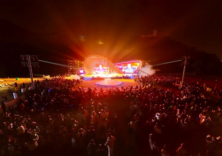 夜幕降临,四川省第三届街舞大赛颁奖晚会在阿署达四季花海音乐广场举行。