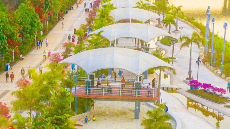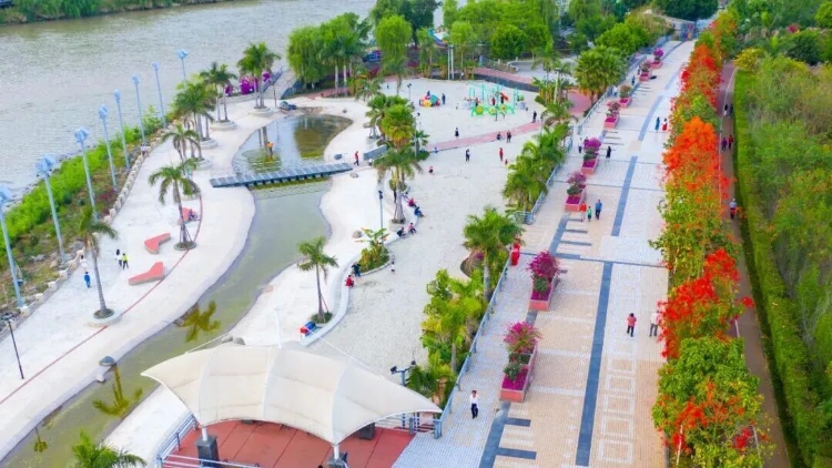 出来散步的人渐渐多了,三三两两,不疾不徐。他们可能不会说太多话,只是走着,看着江景与花影,偶尔拿出手机拍照,用镜头记录生活的美好。